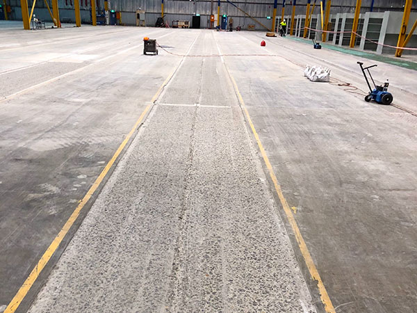 CoGri Australia recently completed filling over 1200 SQMs of industrial pump screed to fill tracks originally ground into a concrete slab when the floor was upgraded to operate narrow aisle fork trucks to meet the Fmin75 specification.